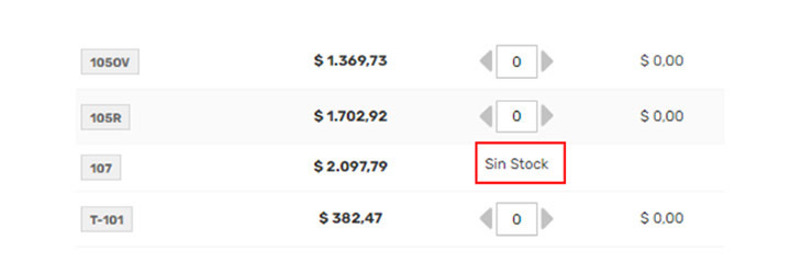 2- También podrás observarlo en la lista de variantes de cada artículo, en caso de no contar con stock, una leyenda lo aclarará.
