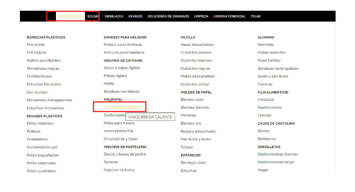 2- Podrás desplegar nuestra línea de categorías y encontrás allí los artículos que se relacionan a tu búsqueda.