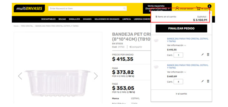 3- En el margen superior derecho aparacerá el carrito con los artículos seleccionados, presionándolo se desplegará la lista con el listados de tus productos selccionados, allí le darás un click a FINALIZAR PEDIDO.